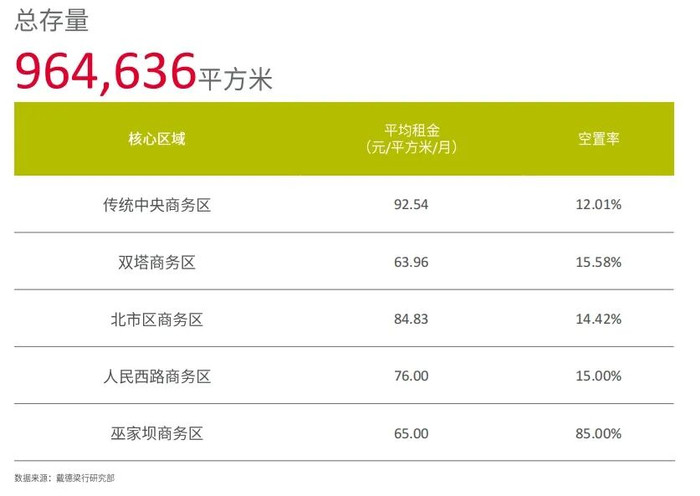 从空置率最高的区域来看,早在2023年巫家坝商务区就以85%名轮换一。