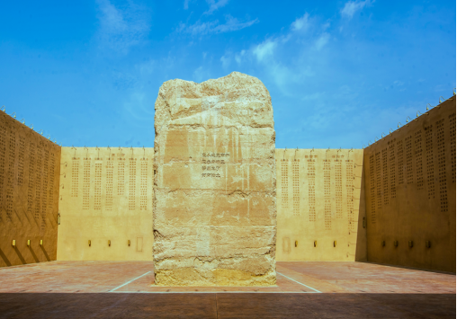 “只好河南·戏剧幻城”内写满河南18地市、1700多个县乡名字的夯土墙。