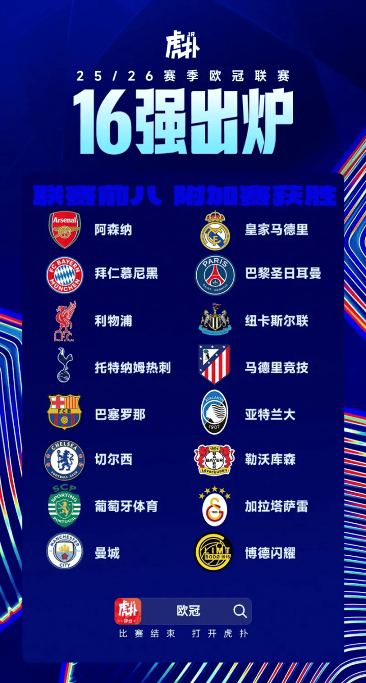 虎扑02月27日讯欧冠附加赛界限,16强沿途出炉,亚搏淘汰赛阶段抽签于北京时期今晚19点运行。