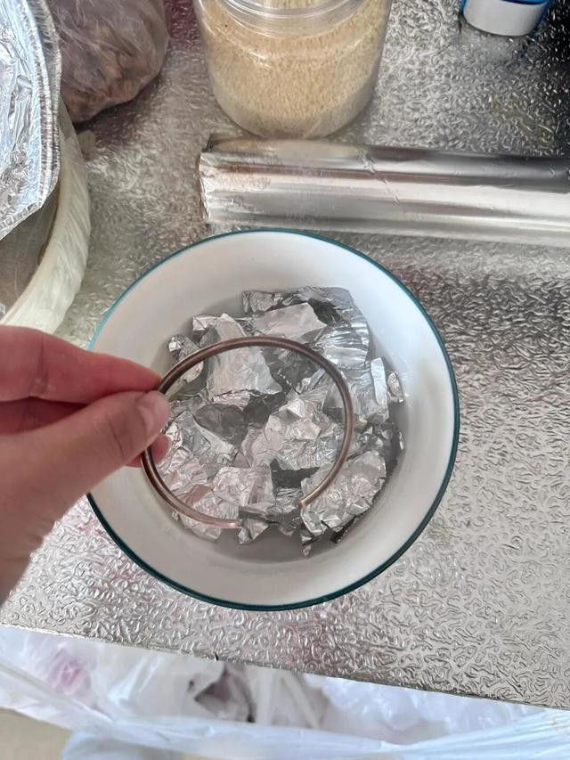 这里头大有常识,铝箔充任阳极,盐当电解质,硬生生把银名义的黑皮给置换没了,一分钱不必花。