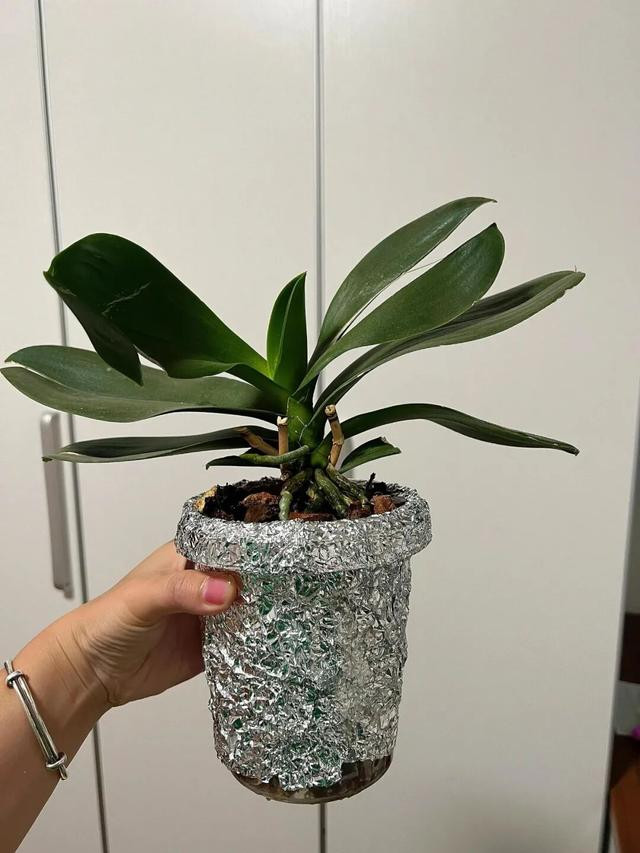 绿植妥妥熬过苦夏。烂几个洞的破花盆这样一包,金属质感拉满,摆外面比新买的还气魄。