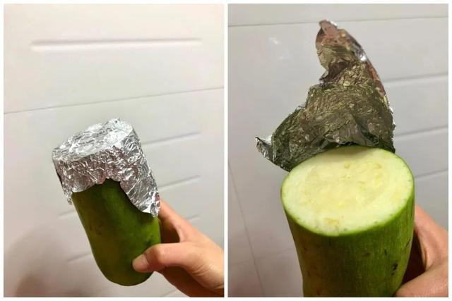 剩半个南瓜、切开的洋葱,用保鲜膜包上放雪柜,没两天切口就干瘪发烂。换铝箔纸把切开的场地死死捂住,塞进冷藏室放上一个星期,切开的面依旧水汪汪的。