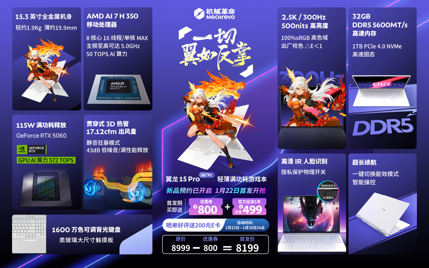 AMD 锐龙 7 255 解决器、RTX 5060 显卡(暮石灰):7699 元,疏通国补 6544.15 元。AMD 锐龙 AI 7 350 解决器、RTX 5060 显卡(云涧白):8199 元,疏通国补 6969.15 元。机械翻新翼龙 15 Pro 2026 接受了 15.3 英寸 2.5K 分手率 300Hz 刷新率 500nits 亮度 LCD 屏,通过 X-Rite / Pantone 专科色调调教认证,色准 ΔE