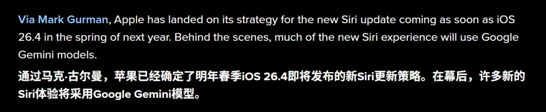 旧年就有讯息,说 Siri 新架构里的查询主义、常识搜索和总结系统中的部分,来自 谷歌的 Gemini 模子。