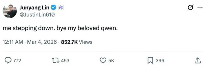 “me stepping down. bye my beloved qwen.”(我辞职了,再见了,我亲爱的千问)。3月4日凌晨,阿里千问核心负责东谈主林俊旸在外交媒体上留住的这句话,回荡圈内。