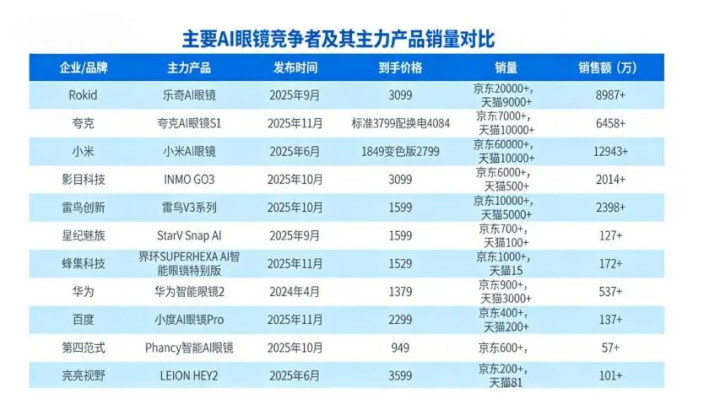 但这与竞品存在量级差距,在主流电商渠谈中,小米AI眼镜同期销量高出7万台,Rokid乐奇AI眼镜销量近3万台。