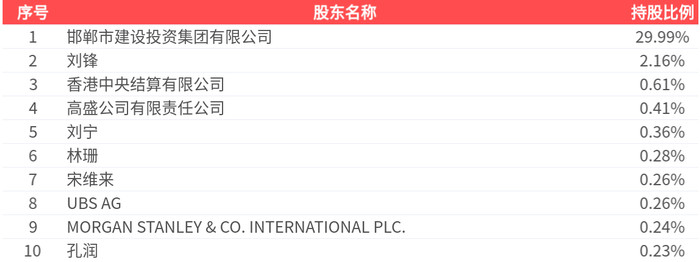 公司鼓动户数为7.63万户,前十大鼓动捏股数目为1.84亿股,占总股本比例为34.79%,前十大鼓动捏股情况如下: