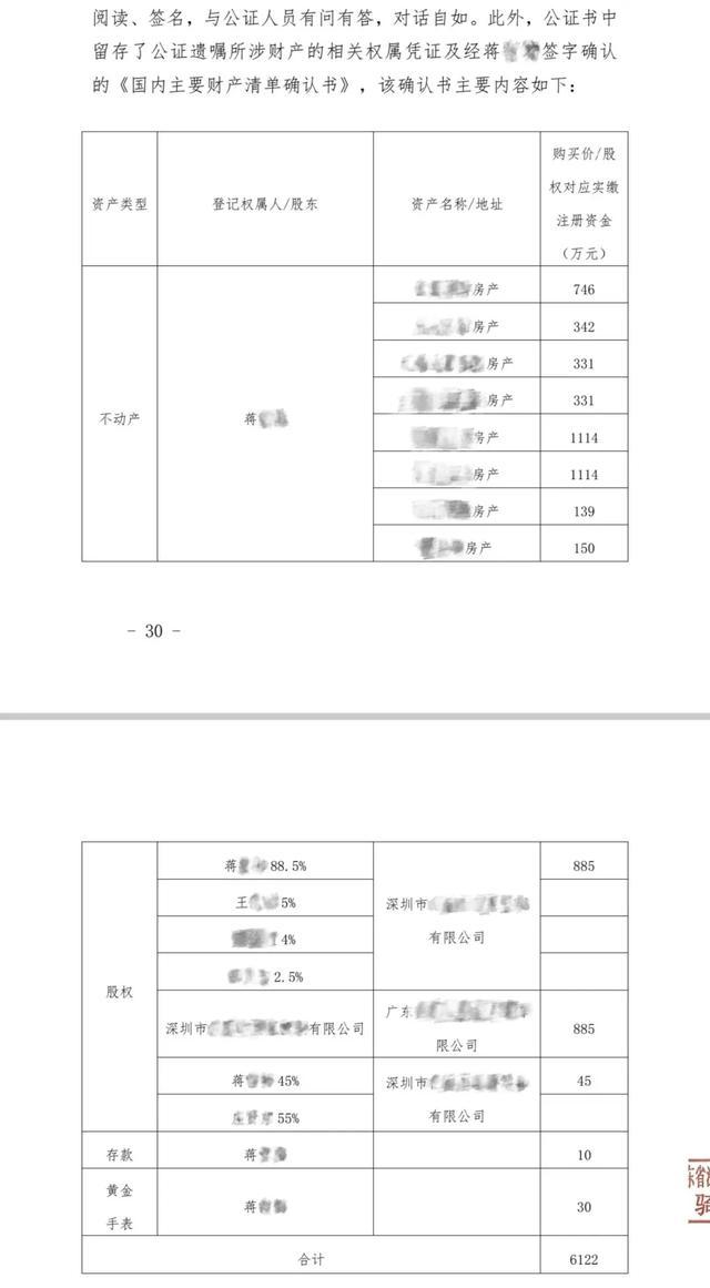 阐明蒋女士的遗嘱,蒋女士将价值三千万元的多套深圳房产和进款由两个男儿承袭,房产待男儿22周岁承袭,而贬责遗产东说念主是卢女士。