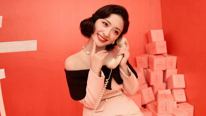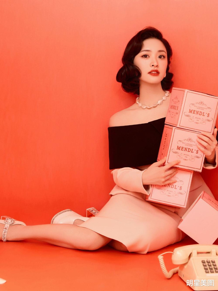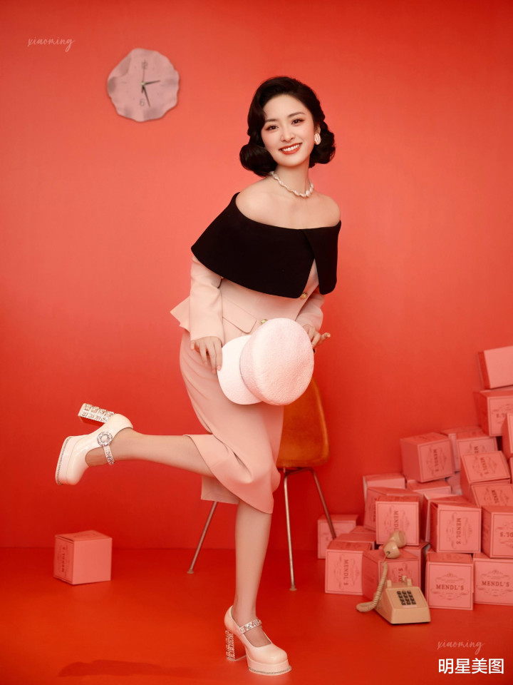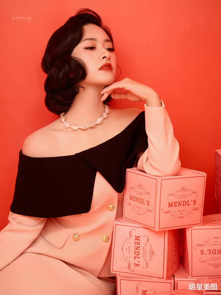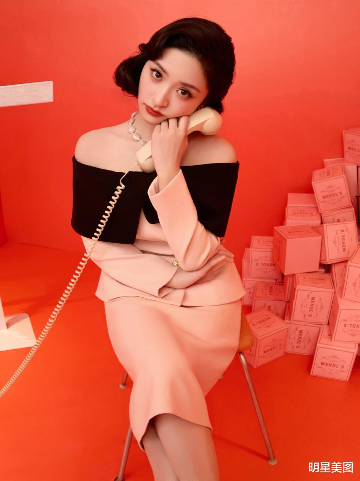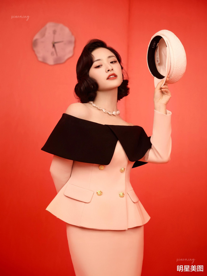 沈月鬈发定格时光,一字肩勾画锁骨线条,精雅气场端方