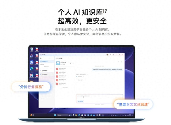 小米条记本及个东说念主AI学问库界面 · 展示小米条记本个东说念主AI学问库安全高效特质