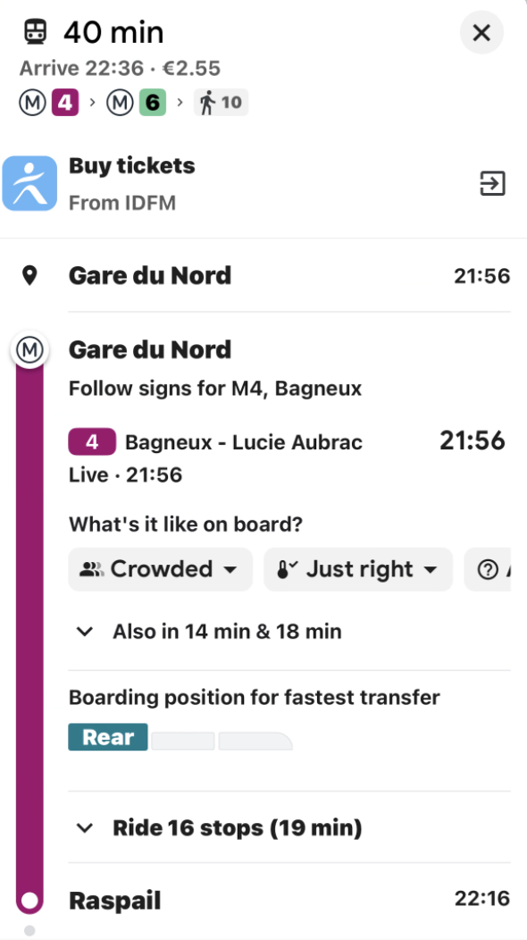 我去的统统西洋城市,Google Maps 皆有可以的阴私率。我偶尔也会和 CityMapper 联用。这两个 app 咫尺基本皆会告诉你这个车次的破耗,路程中也会提出你去作念哪部分的车厢离出站口更近。CityMapper 的刚正是更新实时,公交车和地铁的时效性普通比 Google Map 好,全体而言能让旅行体验更丝滑。