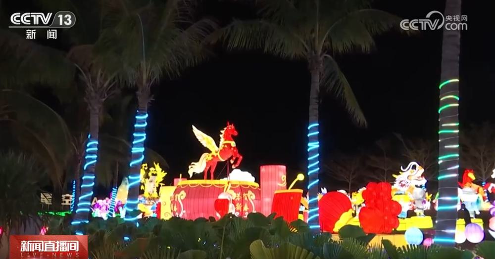 在三亚丝路快意天下景区内,14组大型主题灯组及彩灯将园区装点成流光溢彩的光影天下。“精神沸腾”“骏马迎春”灯组阵容恢宏,“国潮戏剧”等灯组将传统彩灯工艺与国潮审好意思革命和谐,一步一景。